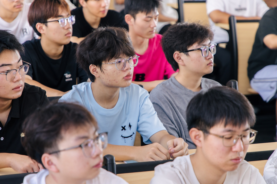 智能制造学院领导张钰带来“理想信念公开课”。她从“九三阅兵”“南京照相馆”“我想离开浪浪山”等热点切入,带领新生在“刷屏”故事里读懂青春使命,并详细讲解“入党导航图”,用“五个阶梯”回答“能否入党”的关切。