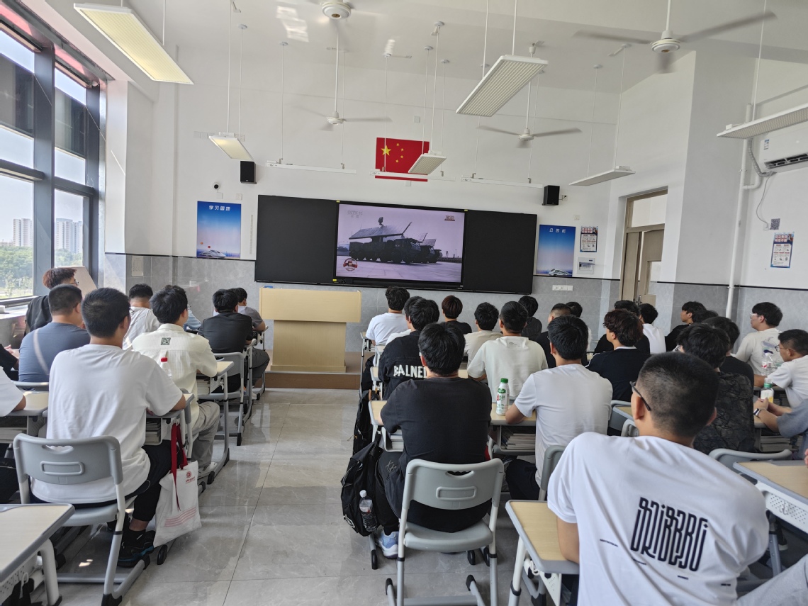 各班教室同步观看纪念抗战胜利80周年阅兵式。铁甲奔涌、战鹰呼啸,屏幕的光映在每一张年轻的脸上,“大国重器”与“小我匠心”同频共振,把家国情怀种进心里,把精益求精的使命感写进青春。