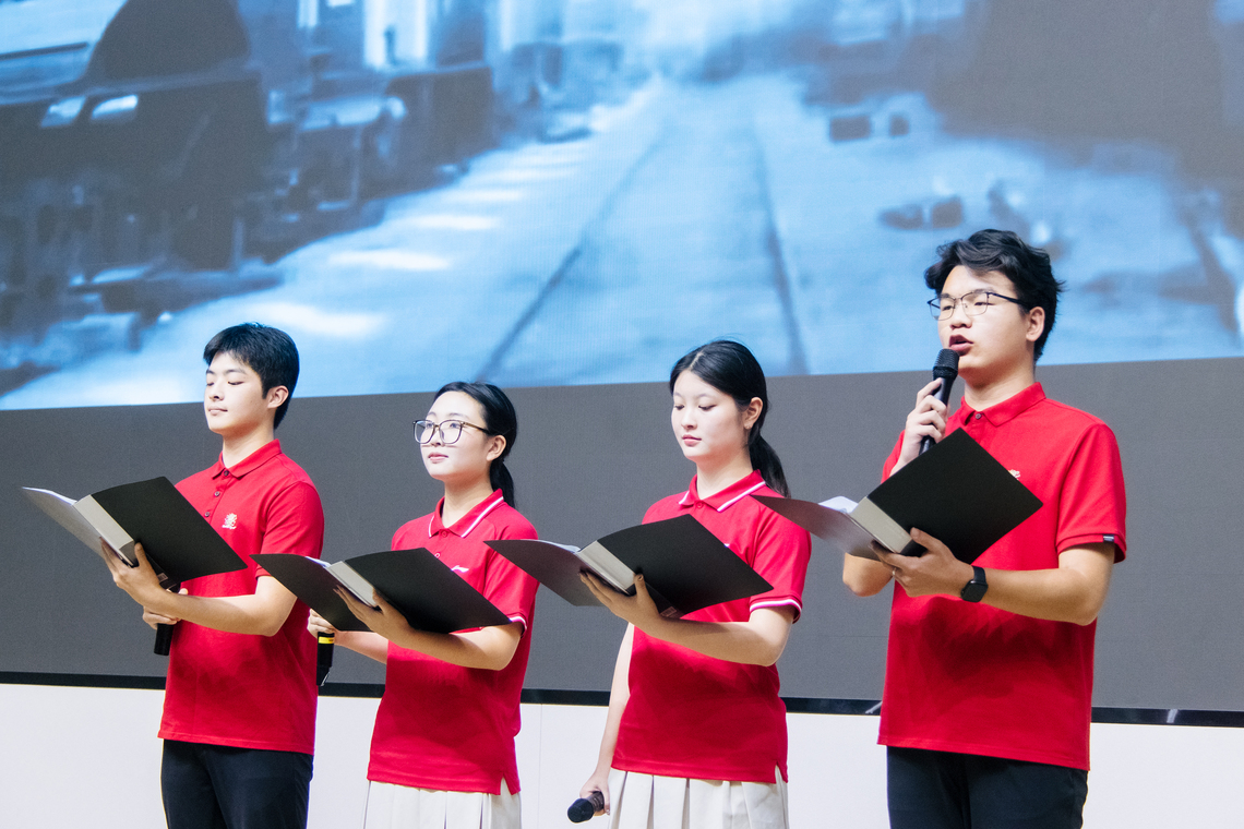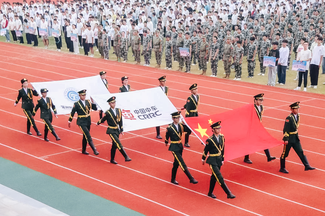 上午,全校师生齐聚体育场参加“中车日”升旗仪式。伴随着雄壮的《义勇军进行曲》,五星红旗冉冉升起,全体师生庄严肃立行注目礼;激昂的《中车之歌》奏响,中车司旗缓缓升至杆顶,中车人代代相传的责任和信念在仪式感中悄然扎根。