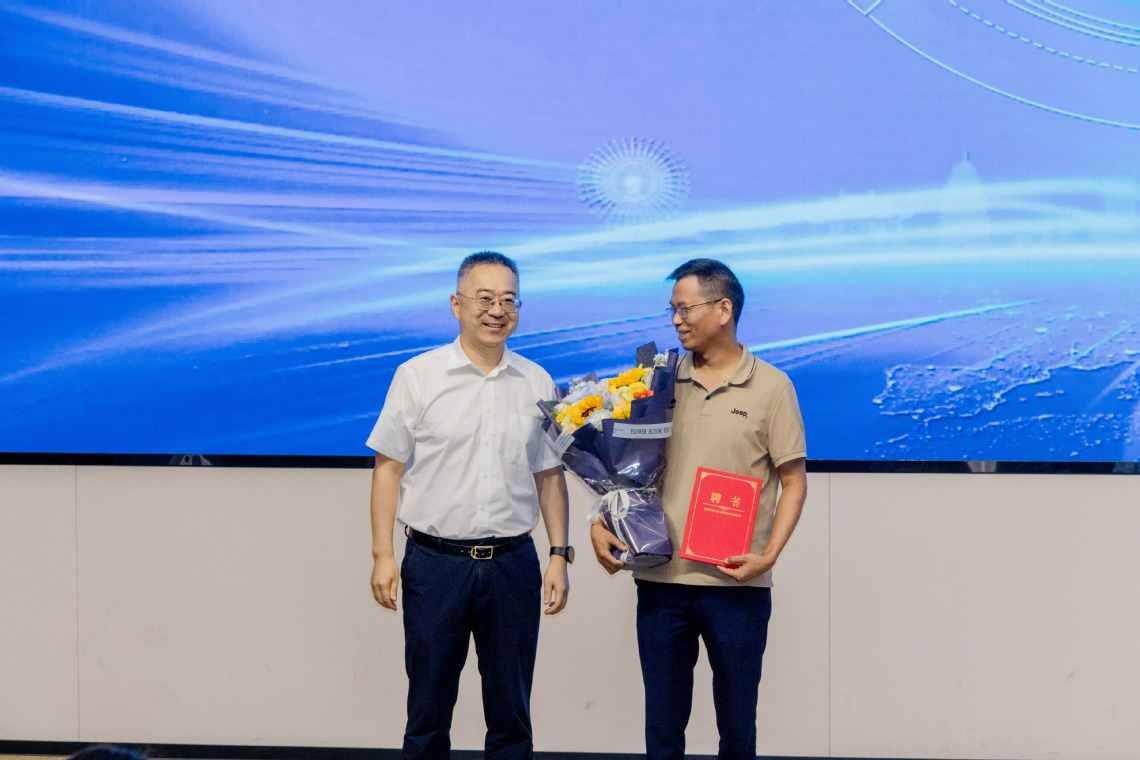 陈刚为廖仲宾大师颁发了“劳模德育导师”聘书。聘请工匠大师担任德育导师是贯彻集团党委大思政课建设决策部署、创新学校德育工作形式、丰富育人内涵的重要举措,旨在通过大师的言传身教,引导学生树立正确的世界观、人生观和价值观,大力弘扬劳模精神、劳动精神、工匠精神。
