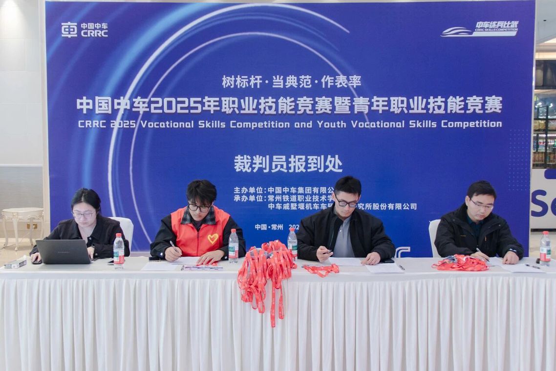 为深入贯彻落实党中央《关于加强新时代高技能人才队伍建设的意见》精神,积极响应《中国中车技能人才素质能力提升2023-2025年行动计划》部署要求,中国中车2025年职业技能竞赛决赛在常州、齐齐哈尔、青岛分别进行。这是中车规模最高、水平最高的技能大赛。常州赛区竞赛时间为10月27日至31日,竞赛职业(工种)包括铁路机车电工、铁路车辆钳工、铸造工。
