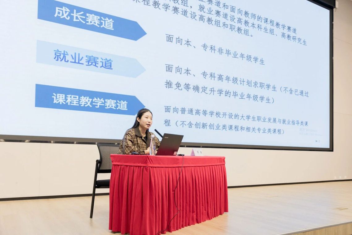 讲座中,周瑜以深厚的专业知识和丰富的指导经验,为在场师生带来了一场干货满满的分享。她首先深度解读了本届职业规划大赛(成长赛道)的赛事规则与评审要点,精准剖析备赛的关键策略,帮助师生把握备赛的主攻方向。随后,她重点分享了生涯发展报告的撰写技巧,从结构搭建到内容填充,提供了诸多实用且具有创新性的建议。最后,她通过生动的案例,系统地指导了学生如何进行科学的自我认知、职业探索与目标设定,引导学生将个人理想与国家社会发展需要相结合,绘制出属于自己的精彩人生蓝图。