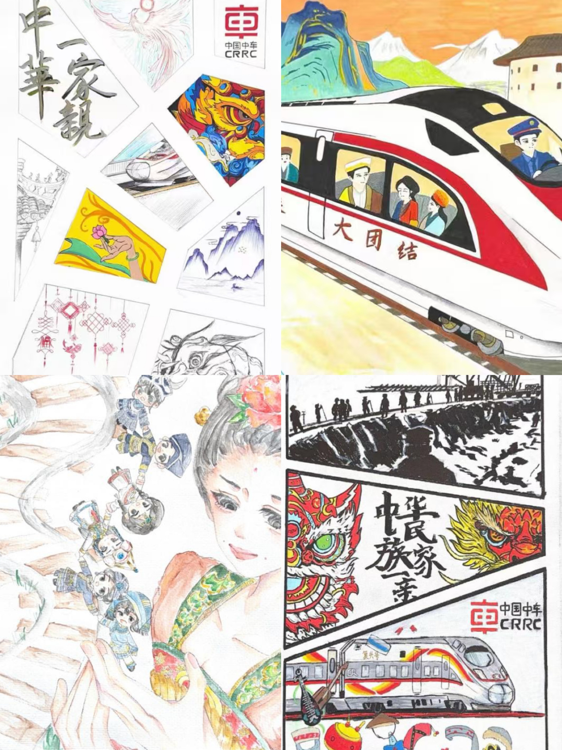 活动中,学生们充分发挥创意与才华,将专业特色与民族元素巧妙融合:有的作品以细腻笔触绘制“民族团结号”列车穿梭于祖国大地的壮阔景象,车厢内各民族同胞笑脸相迎、其乐融融;有的作品以浓烈色彩展现非遗文化与轨道交通建设的碰撞,让传统与现代在画卷中交相辉映。每一幅作品都饱含深情、寓意深远,既展现了学生们的艺术素养,更传递了他们对民族团结的珍视与对交通强国建设的憧憬,让中华民族共同体意识在艺术熏陶中落地生根。