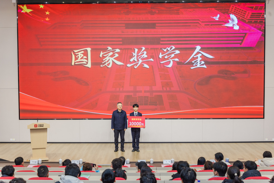 第二篇章“卓越·国之栋梁”将大会推向高潮。陈刚为国家奖学金获奖者陈宇焕颁发荣誉证书。张喜民为中等职业教育国家奖学金获得者李鹏、顾涵、陈紫萱颁奖,三名同学勤学苦练、精益求精的钻研态度,扎实肯干、勇于突破的专业素养,成为全体学子学习的标杆。