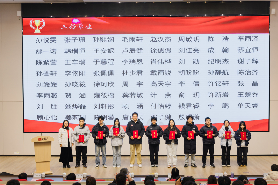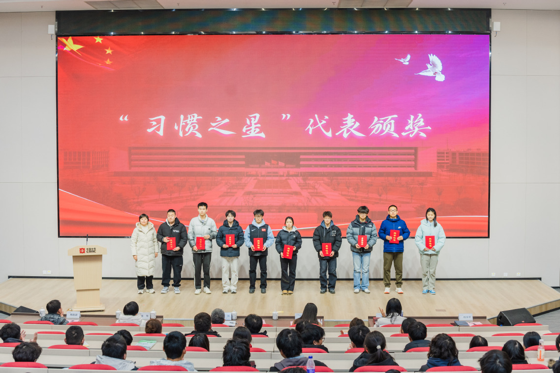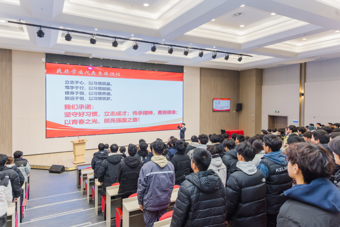 1月8日,学校在致远楼105报告厅举行“卓越基石,习惯致远”2024-2025学年好习惯养成总结暨年度优秀学生表彰大会。校长陈刚,党委副书记、纪委书记、工会主席张喜民,学生工作处及两院相关负责人,班主任代表与学生代表齐聚一堂,共同见证这一重要时刻。