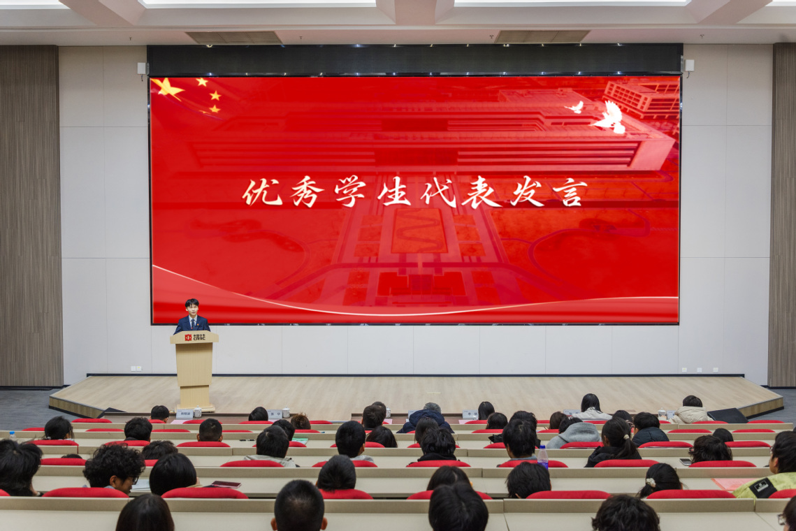 陈刚在表彰大会上向获奖同学表示祝贺,并向辛勤付出的老师致以感谢。他指出,卓越的基石往往藏在微小的习惯之中,以校友坚持整理笔记的经历为例,说明好习惯能为未来发展持续积蓄力量。他强调,习惯的养成离不开坚持,通过 “降低启动成本” 和 “五分钟启动法” 等方式,可以让坚持变得更加轻松自然。优秀也不应止步于个人,而应形成 “习惯共同体”,带动更多同学共同进步。最后,他寄语同学们珍惜荣誉,将好习惯内化于心、外化于行,脚踏实地,在未来的道路上绽放属于自己的青春光彩。