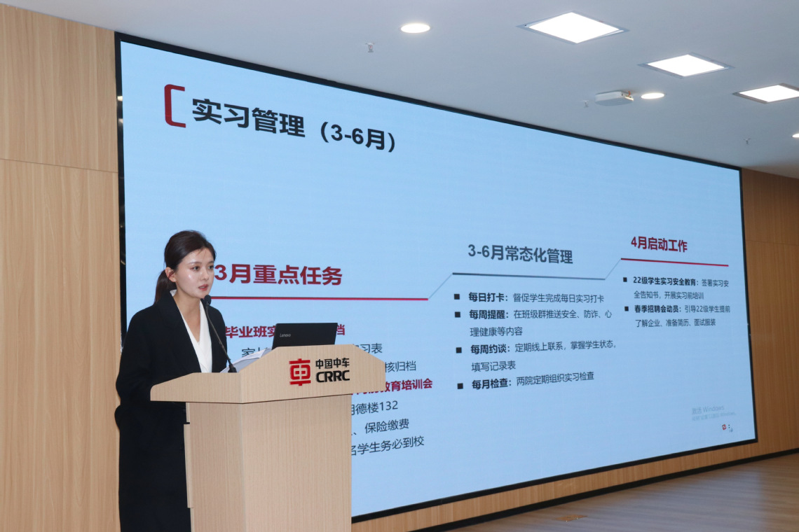 学生工作处(招生就业处)副处长史祯就实习管理与招生就业工作进行专项布置。她强调要加强实习学生的过程管理与安全指导,通过多种举措拓展就业渠道,做实做细招生宣传与就业指导工作。