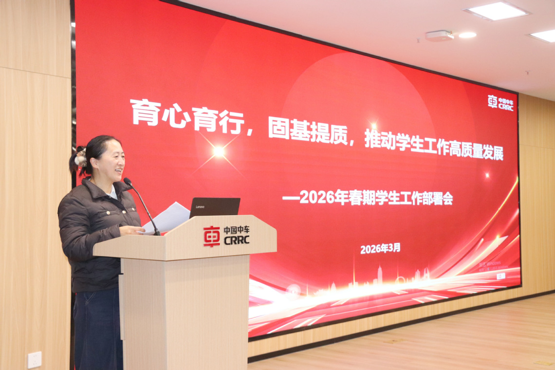 学生工作处(招生就业处)处长李妍对2025年学生工作进行全面总结,并就2026年春期重点工作作出具体部署。她指出,新学期需紧紧围绕“上好开学第一课”筑牢学生思想根基,积极备战创新创业比赛以提升学生创新能力,鼓励学工队伍主动参与各类业务能力比赛;积极创办“常铁大讲堂”平台丰富校园文化内涵,进一步规范日常学生管理,精准落实家庭经济困难学生认定工作,持续筑牢学生心理健康防线,确保新学期各项工作顺利开局、稳健起步。