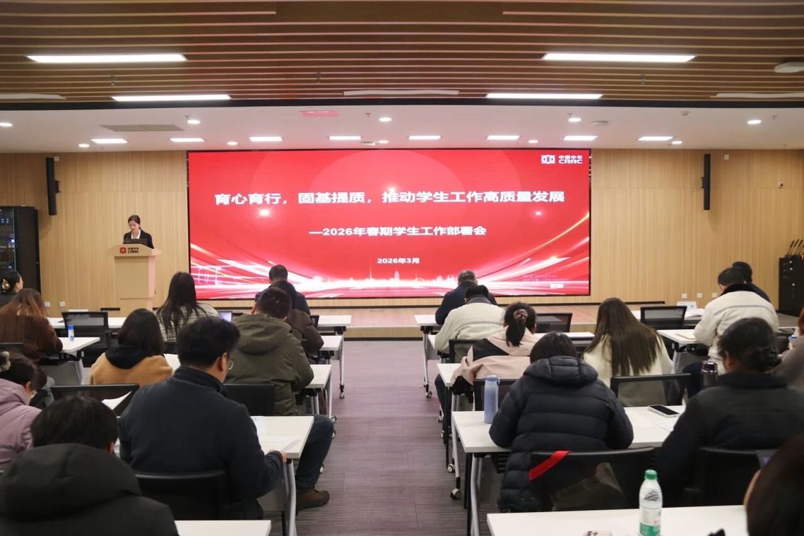 3月2日,学校组织召开2026年春期学生工作部署会。本次会议以“育心育行、固基提质,推动学生工作高质量发展”为主题,全面总结回顾2025年学生工作成效,系统谋划并部署新学期重点任务。学校校长陈刚,党委副书记、纪委书记、工会主席张喜民,学生工作处(招生就业处)、团委、各二级学院负责人及全体班主任、辅导员共计60余人参加会议。