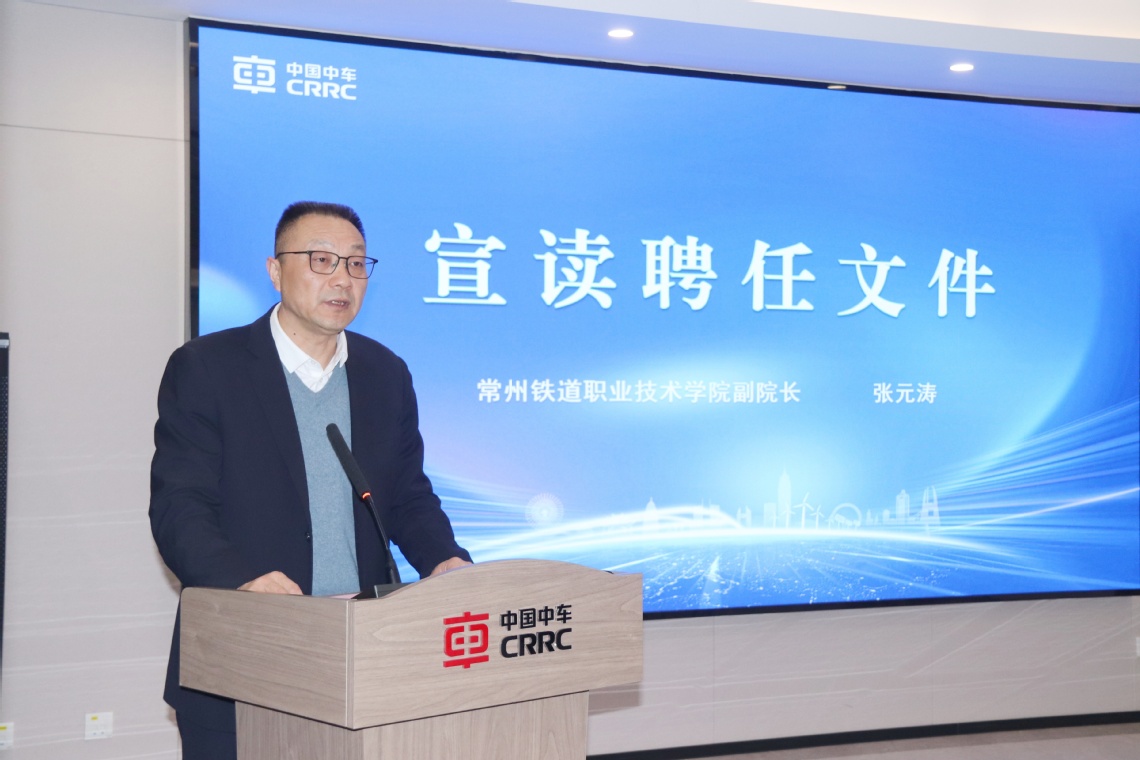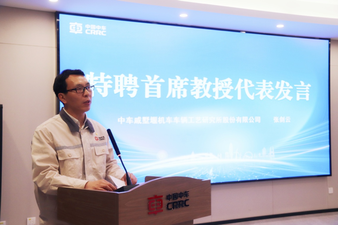 中车戚墅堰所金属材料技术研发中心科试班班长、我校1999届铸造专业校友张剑云代表特聘首席教授发言。他表示,将把绝技绝活带进学校课堂,并推动“劳模创新工作室”成为教师实践、学生实习的企业课堂。他号召,各位特聘首席教授共同努力,把劳模工匠的“匠心”和“技艺”传播到校园,共同为交通强国事业做出薪火传承的贡献。