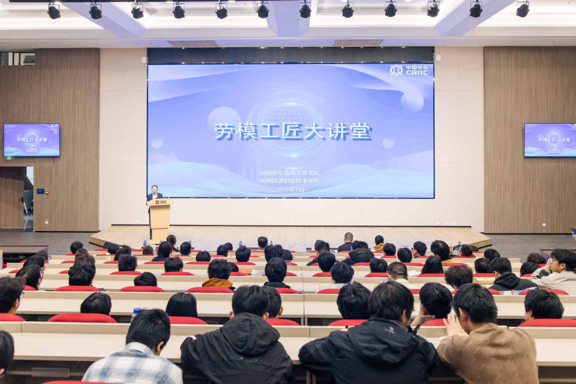 为大力弘扬劳模精神、劳动精神、工匠精神,3月26日,学校联合中车高铁工匠学院共同举办“劳模工匠进校园”暨2026年就业指导主题月启动仪式。活动特邀2025年“大国工匠年度人物”、中车首席技能专家、全国劳动模范、全国最美职工、中车四方股份公司特级技师管益辉大师走进校园,为师生代表作事迹报告。学校党委书记陈永平,党委副书记、纪委书记、工会主席张喜民,相关部门负责人及师生代表共220余人参加活动。
