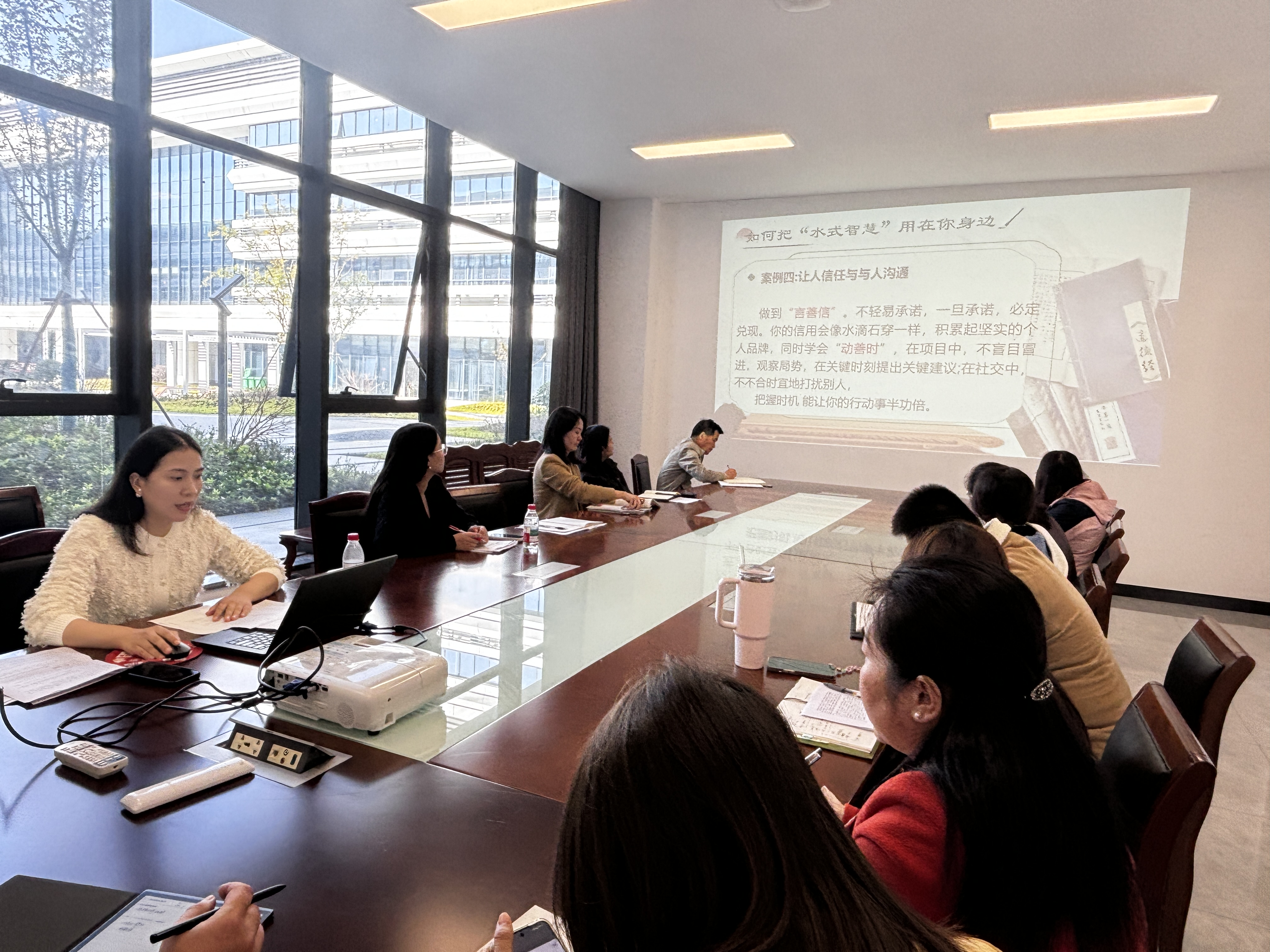 活动伊始,毛青云带来课例《以水为镜悟智慧,儒道互补润成长——老子八章》,将经典智慧与现代生活深度融合,形式新颖且富有实效。课程注重活学活用,将经典智慧转化为行动指南。课堂打破传统经典教学模式,让学生在互动体验中感悟传统文化魅力,实现知识学习与素养提升的双重目标。