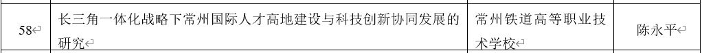 近日,收到常州市科学技术局通知,我校陈永平书记主持的《长三角一体化战略下常州国际人才高地建设与科技创新协同发展的研究》成功立项为2025年度常州市软科学研究专项(一般项目)课题。